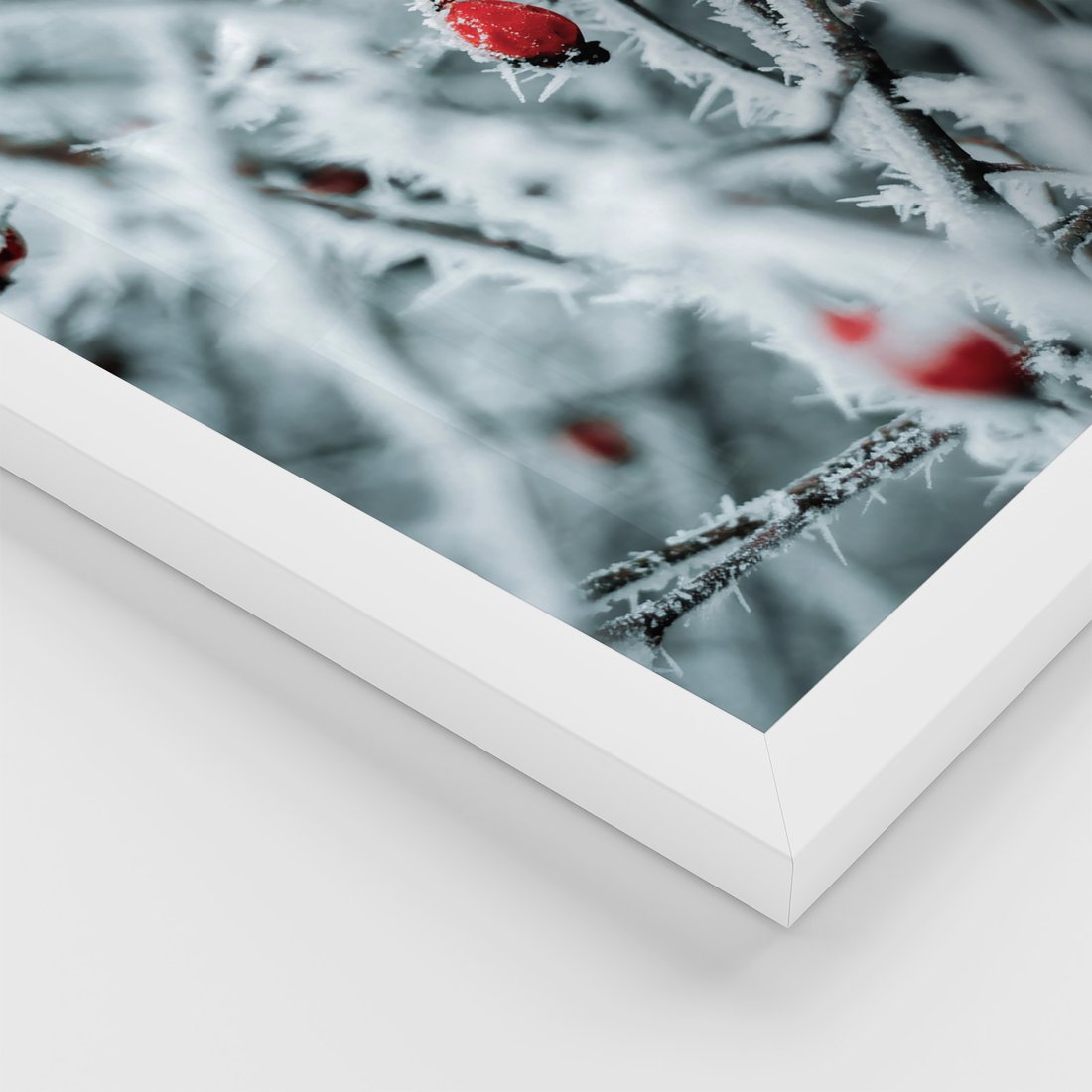 Zestaw obrazy w ramie, plakaty - zima, śnieg, mróz - rama biała