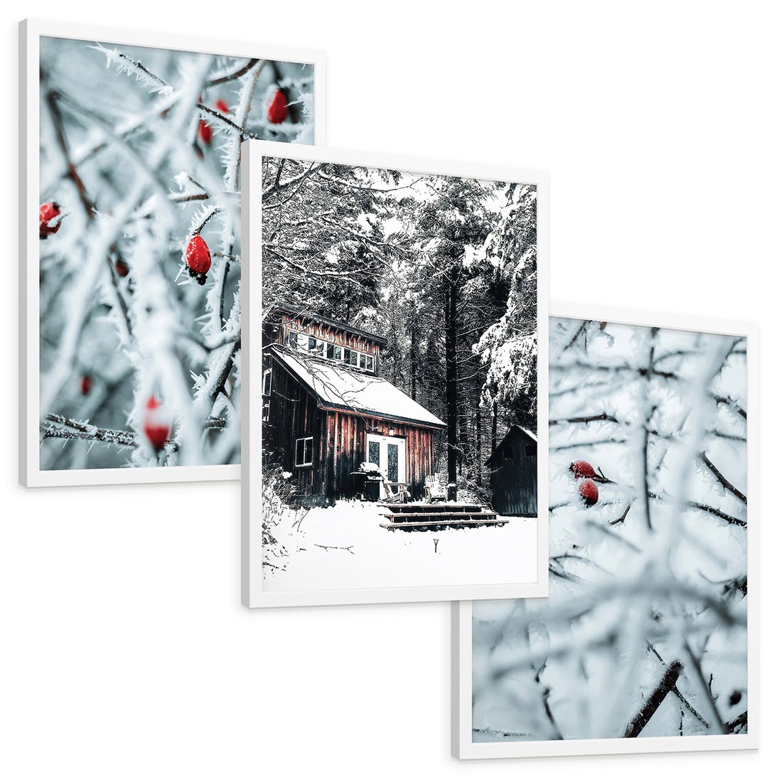 - Zestaw obrazy w ramie, plakaty - zima, śnieg, mróz