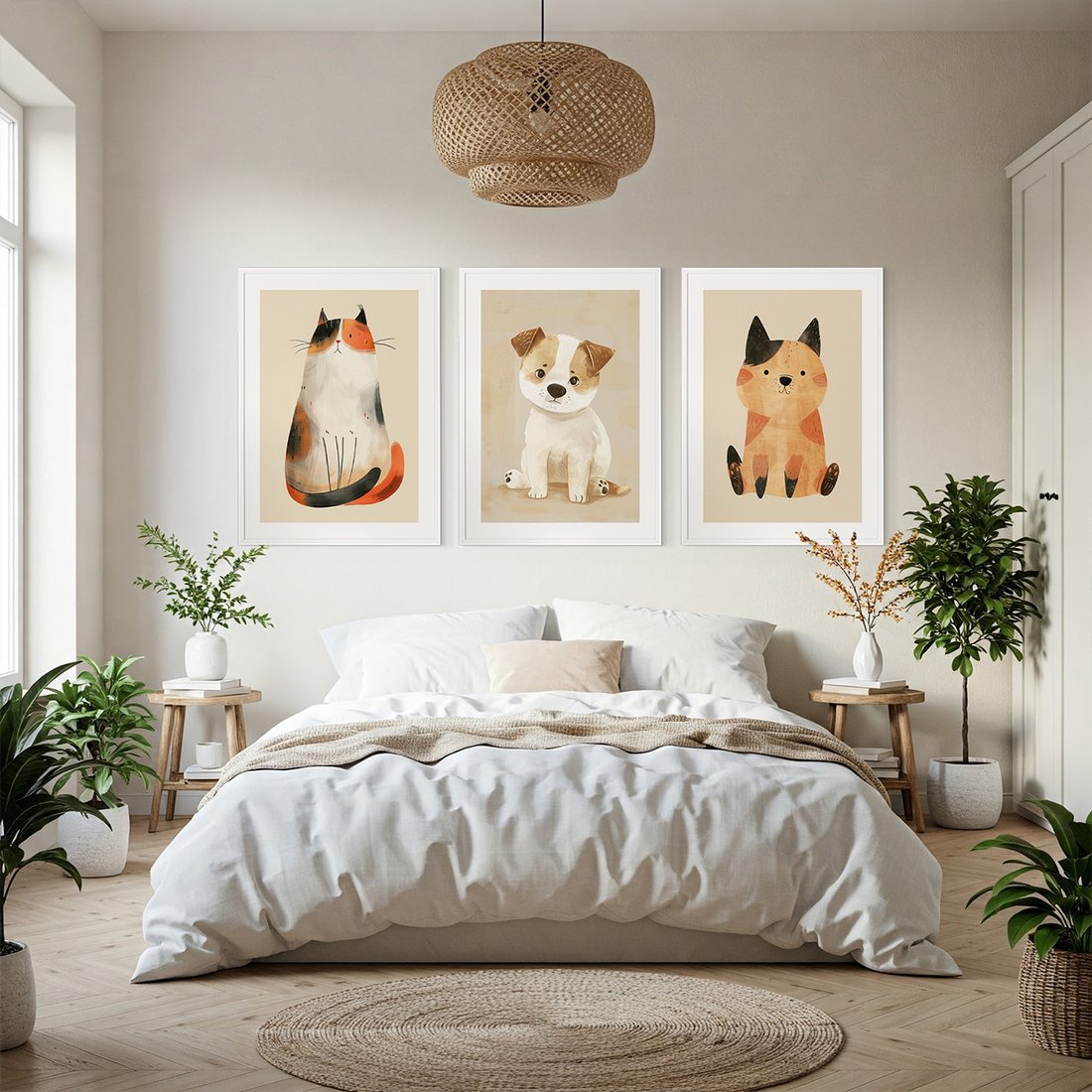 Przenieś piękno sztuki do swojego domu dzięki naszemu starannie skomponowanemu produktowi zestaw obrazów zwierzęta, kot, pies. Każdy plakat, oprawiony w elegancką ramę, łączy w sobie estetykę i trwałość. Uniwersalne wzornictwo sprawia, że te dekoracje ścienne doskonale komponują się z różnymi stylami wnętrz, od nowoczesnych po klasyczne. Łatwość montażu pozwala na szybką i bezproblemową metamorfozę Twojej przestrzeni. To również idealny pomysł na wyszukany prezent, który z pewnością zachwyci.