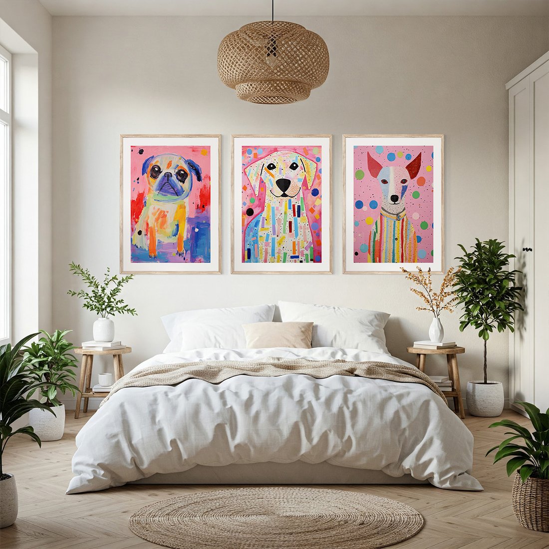 - Zestaw obrazy w ramie, plakaty - zwierzęta, psy, kolorowe