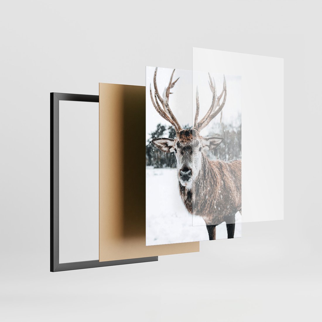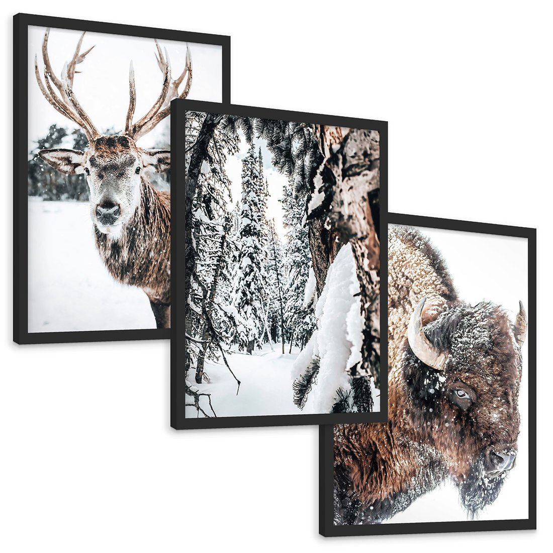 Zestaw obrazy w ramie, plakaty - zwierzęta, zima, śnieg - rama czarna